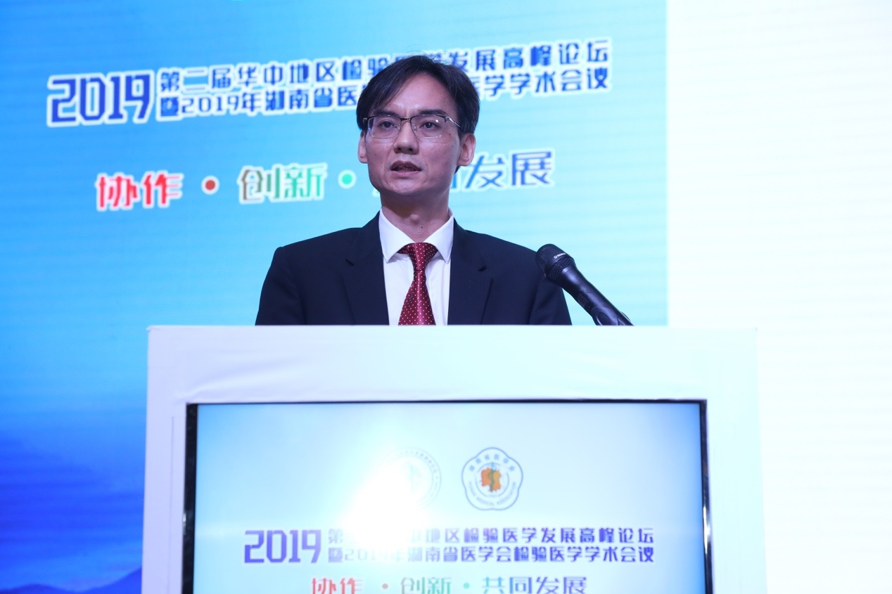 何慶南教授代表湖南省醫(yī)學(xué)會(huì)檢驗(yàn)專業(yè)委員會(huì)主委的依托單位——中南大學(xué)湘雅三醫(yī)院出席并致辭,他表示當(dāng)今醫(yī)學(xué)的發(fā)展進(jìn)入了一個(gè)快車道,主要是醫(yī)學(xué)檢驗(yàn)技術(shù)的蓬勃發(fā)展促進(jìn)了整個(gè)醫(yī)學(xué)事業(yè)的發(fā)展,醫(yī)學(xué)檢驗(yàn)作為臨床診斷和治療療程判斷的重要手段,如何與臨床協(xié)作、創(chuàng)新、共同發(fā)展是檢驗(yàn)人員和醫(yī)生都需要思考的問題,檢驗(yàn)人員的智慧和經(jīng)驗(yàn)應(yīng)與臨床醫(yī)生分享。