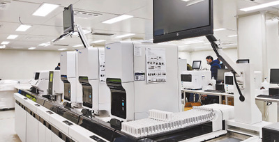 圖為雷神山醫(yī)院醫(yī)技樓的檢驗科室。 田豆豆 韓 笑攝影報道 |