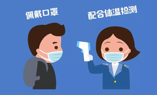 主動(dòng)配合車站工作人員做好體溫檢測,縮短停留候車室時(shí)間。