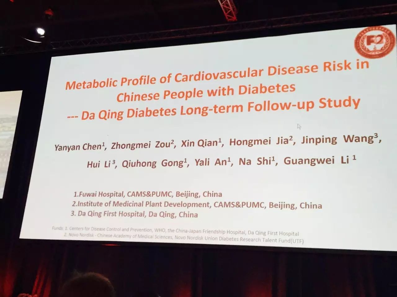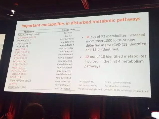 里斯本時(shí)間9月14日上午,在Fitzgerald Hall,中國醫(yī)學(xué)科學(xué)院阜外醫(yī)院陳燕燕教授代表團(tuán)隊(duì)匯報(bào)了“中國糖尿病人群心血管疾病風(fēng)險(xiǎn)代謝特征——大慶研究長期隨訪結(jié)果”。通過對大慶研究人群進(jìn)行長期隨訪,發(fā)現(xiàn)72種代謝產(chǎn)物及8種代謝途徑與糖尿病心血管疾病相關(guān),其中18種代謝產(chǎn)物在糖尿病合并心血管疾病人群中升高超過1000倍。多變量回歸分析顯示2種代謝物(20-HETE、Palmitoyl sphingomyelin)可能是糖尿病合并心血管疾病的獨(dú)立危險(xiǎn)因素;其中4種代謝途徑與糖尿病心血管疾病高度相關(guān)。